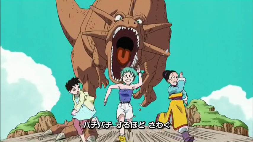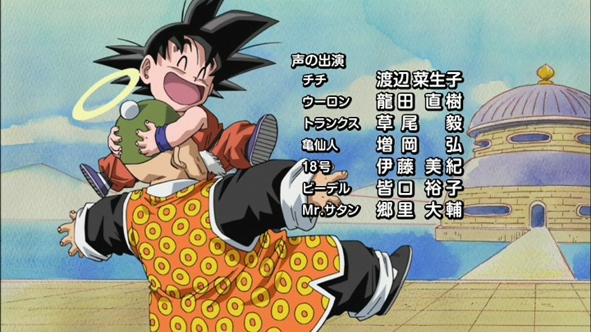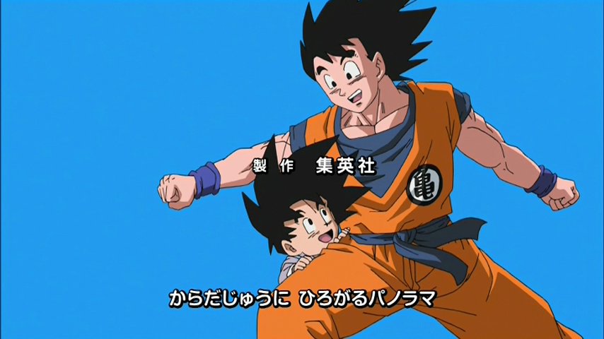 Ce film est censé faire plaisir aux fans, d'où la pelletée d'attaques lancées de manière purement gratuite par Gotenks et la pseudo-scène de sauvetage, seule occasion de se montrer pour des personnages devenus trop faibles. Heureusement, on retrouve également deux petits cadeaux pour le public puisque l'opening de cet OAV est en fait un remake du premier : Cha-la Head Cha-la, parmi les plus mythiques au monde. Passé un logo des plus hideux, on découvre avec un réel plaisir les images entièrement refaites avec les techniques modernes et au passage les plans changés pour coller à l'époque. Ainsi, quand Bulma jeune fuyait un dinosaure sur son scooter, on la retrouve désormais plus âgée en train de fuir en courrant... avec Chi-Chi et Videl. Le générique regorge ainsi de petits changements sympathiques que nous vous proposont ici.