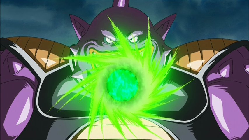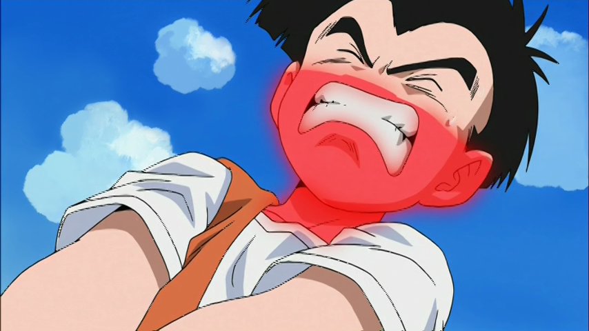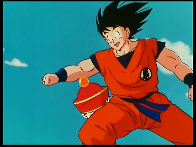 Vu que c'est pas avec des attaques pareilles qu'ils vont le battre, Aka leur balance une pluie de boules d'énergie qui s'abat sur nos amis combattants ou civils comme Bulma ou Videl et se retrouvent en danger ! Une occasion pour tous les seconds couteaux de briller. Yamcha (encore lui !) ressort son Sôkidan – vous savez sa boule télécommandée qui ne servait déjà à rien face à Shen. Krilin, lui, sauve sa femme et sa fille avec un petit Kienzan à l'ancienne, et même Yajirobé qui tranche une pierre en deux et Tortue Géniale qui sauve des gouvernantes ont droit à leur heure de gloire. Seuls Goku et Végéta restent en retrait pour l'instant.