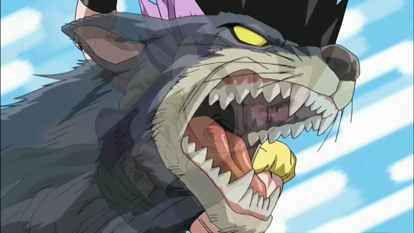 Et face à ce nouvel adversaire, Goten et Trunks semblent dépassés... est-ce à dire qu'ils vont devoir laisser la main aux adultes ? Non bien sûr car il leur reste leur technique de fusion également. En même temps, en deux ans, on a le temps d'oublier la danse de la fusion et bien sûr, nos deux bambins commencent par se foirer un coup. Enfin bref, le temps de dire trois fois « c'est là que je veux aller et pas autre part »1 voici venir le beau Gotenks (ou Gotrunks dans l'anime made in A.B. Vidéo) en mode maxi friming ! L'agent double nous offre un festival de techniques... minables ! Ouverture sur le Rôga Fu Fu Ken, plus connu chez nous sous le nom de la Technique du Loup de Yamcha avant d'enchaîner sur un Haï Kyu Ken de Ten Shin Han – qui n'est pas là – cette technique parodiant un échange de Volley Ball.